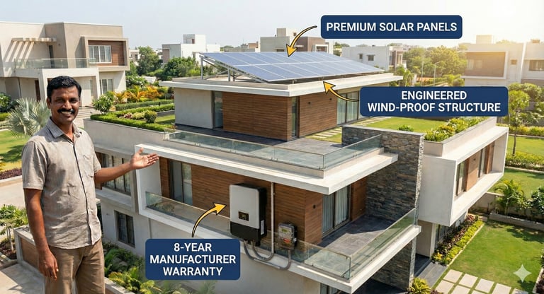 High Quality materials for efficient solar power system, using only MNRE specified materials.